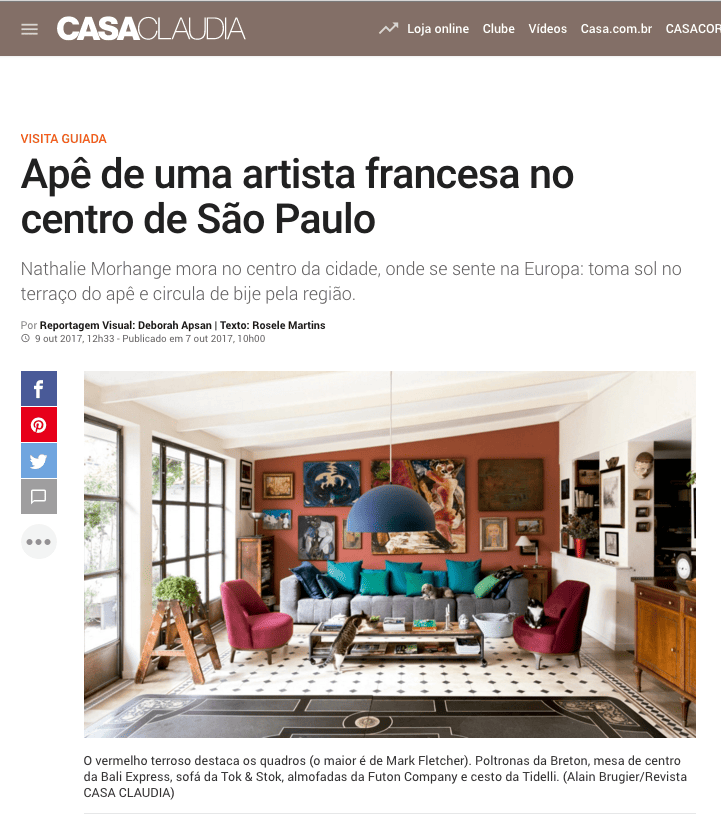 A sala do apartamento da francesa Nathalie Morhange, no centro da cidade, tem o sofá repleto de almofadas classic da Futon Company. As almofadas em tons de verde, bem vibrantes, se complementam com as poltronas vermelhas e dão toque moderno ao estilo retrô do ambiente. Em entrevista à Casa Claudia online de outubro de 2017, a proprietária conta que alí se sente na Europa.