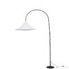 Sua base metálica é produzida em metal com pintura epóxi em preto ou branco, garantindo estabilidade, longa durabilidade e um acabamento uniforme de alta qualidade. A luminária possui interruptor de piso redondo, facilitando o acionamento sem interferir na estética da peça.