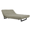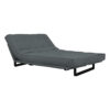 Sofá-cama multifuncional com base metálica preta e futon sharp. 3 posições: sofá, cama e chaise.