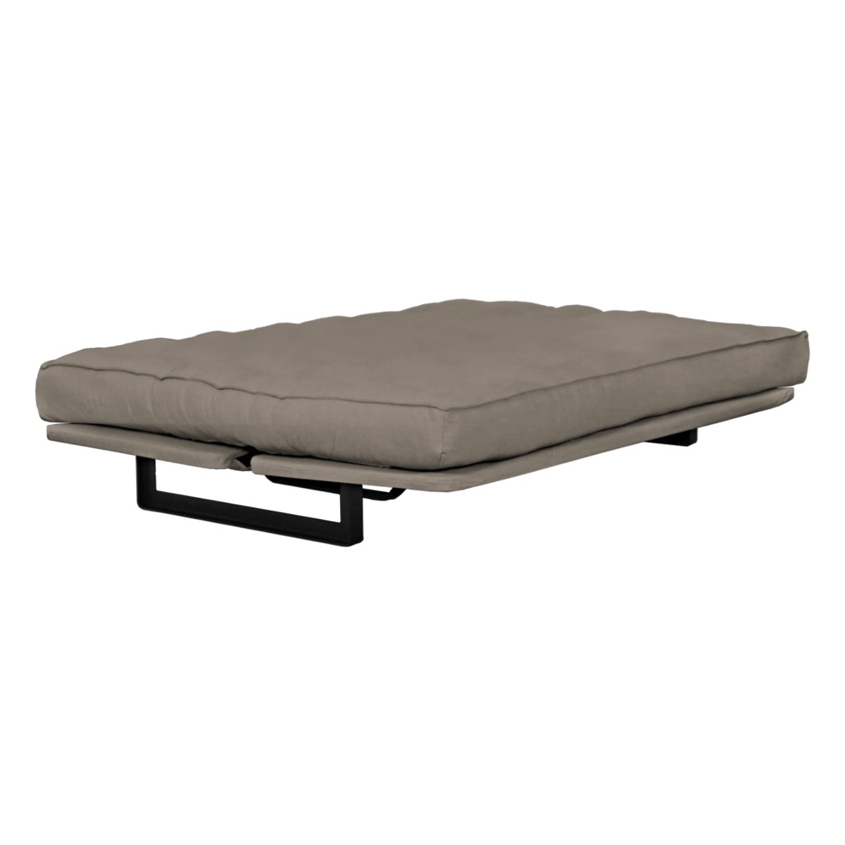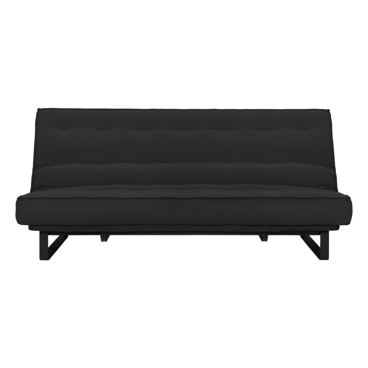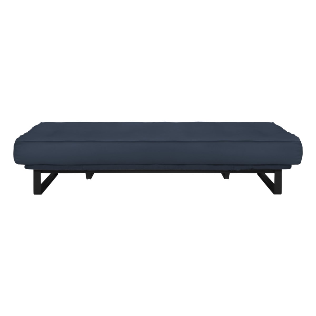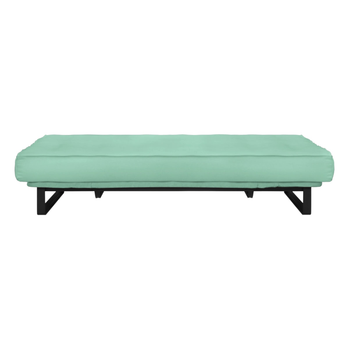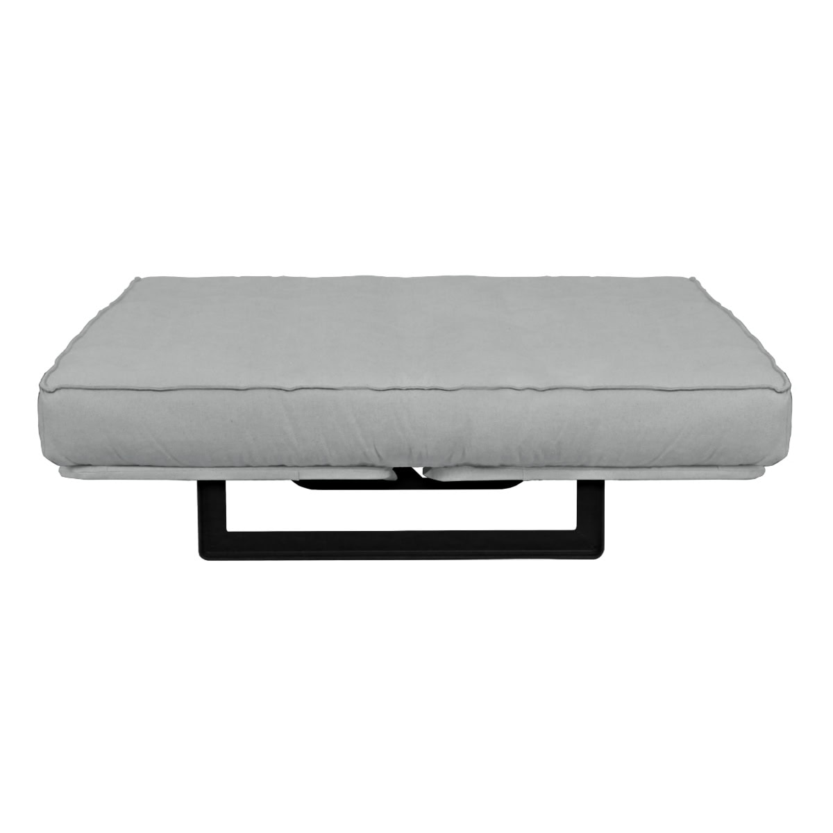 Sofá-cama multifuncional com base metálica preta e futon sharp. 3 posições: sofá, cama e chaise.