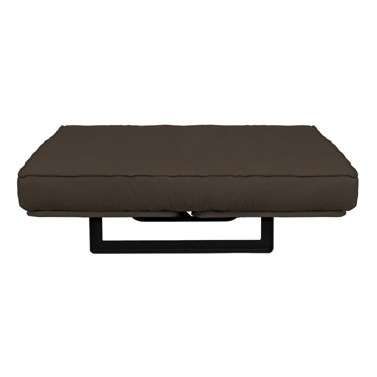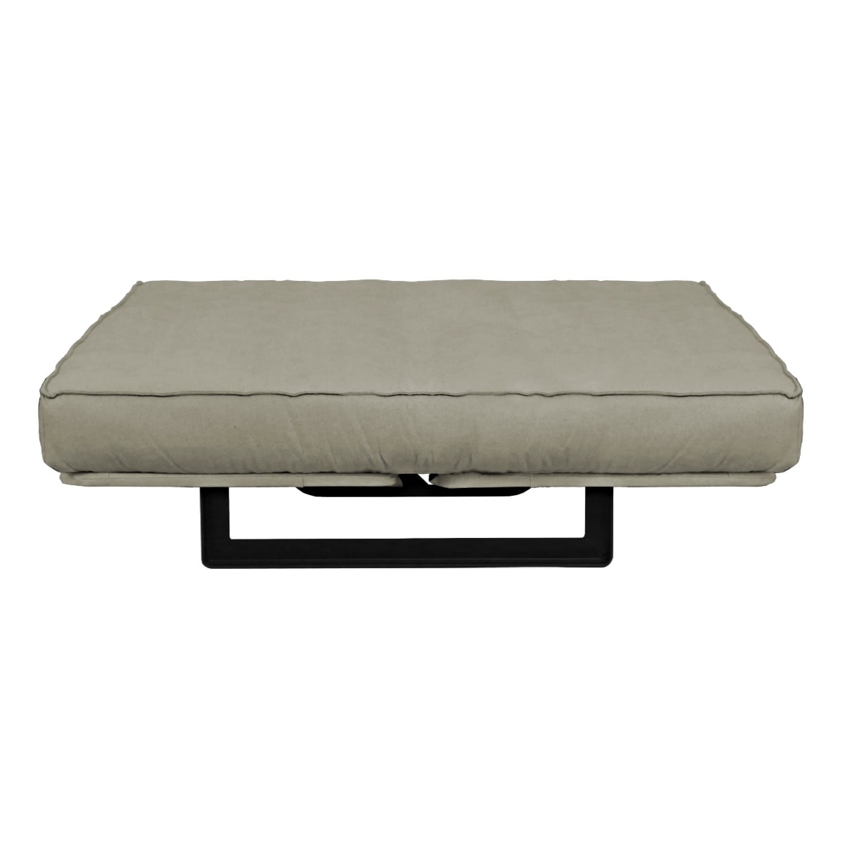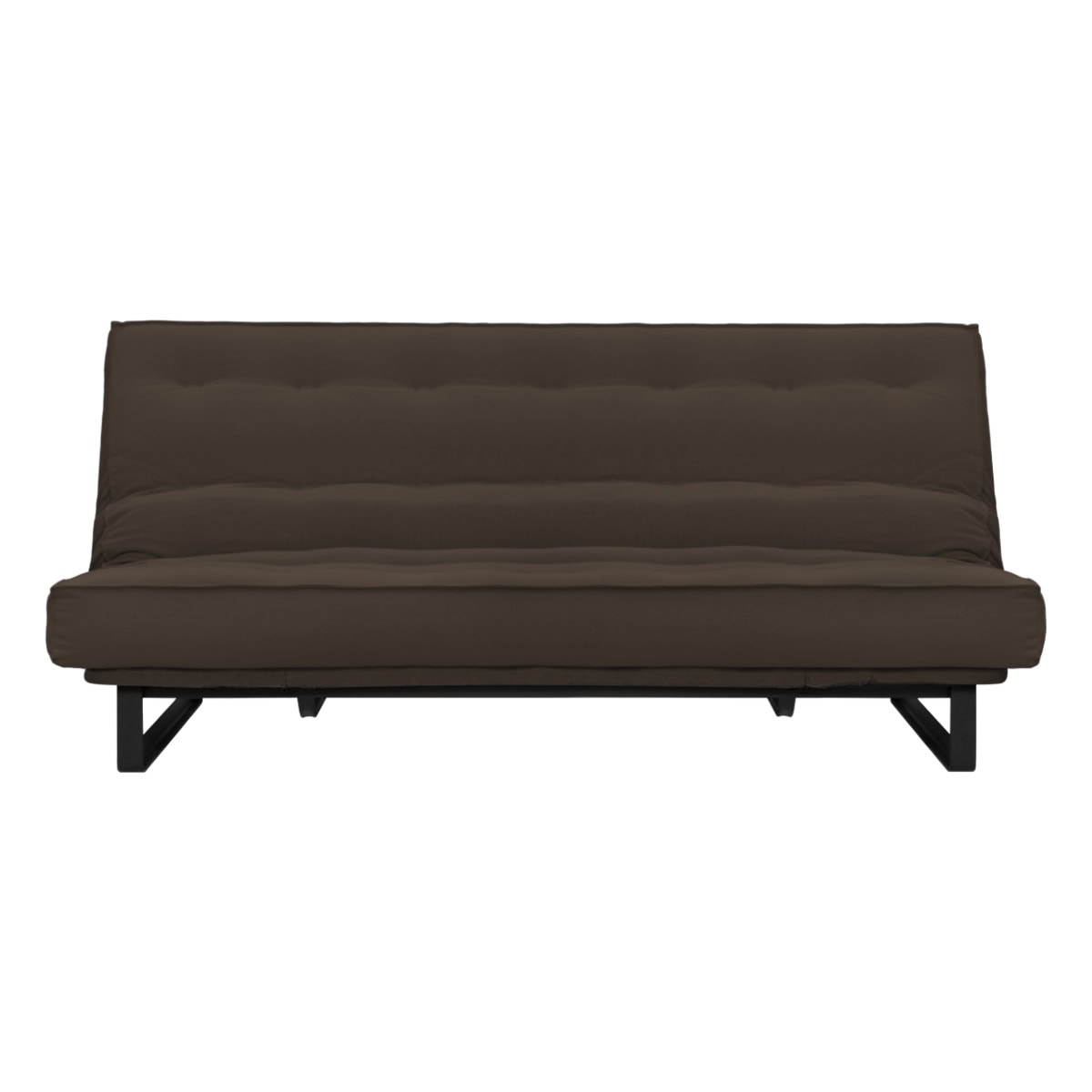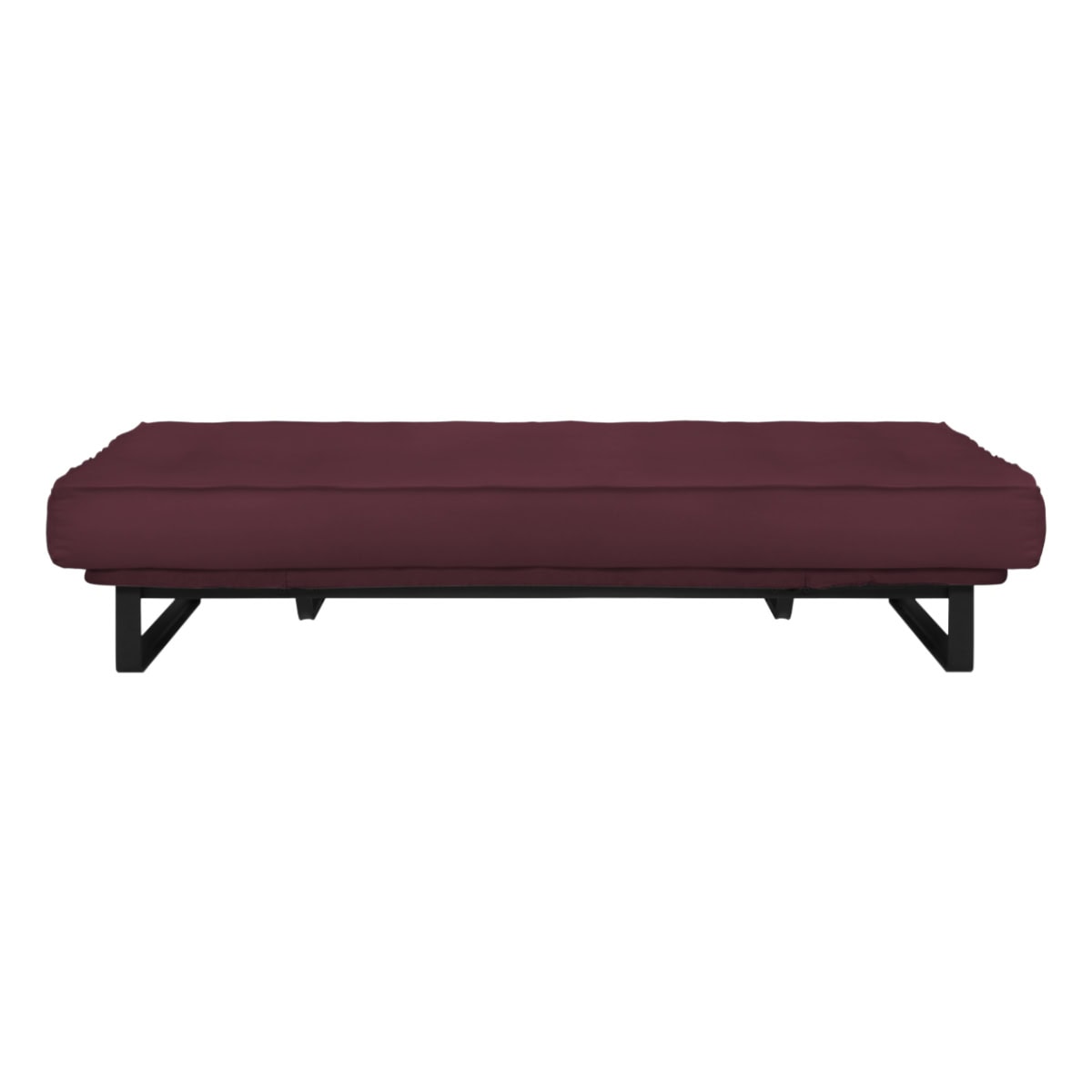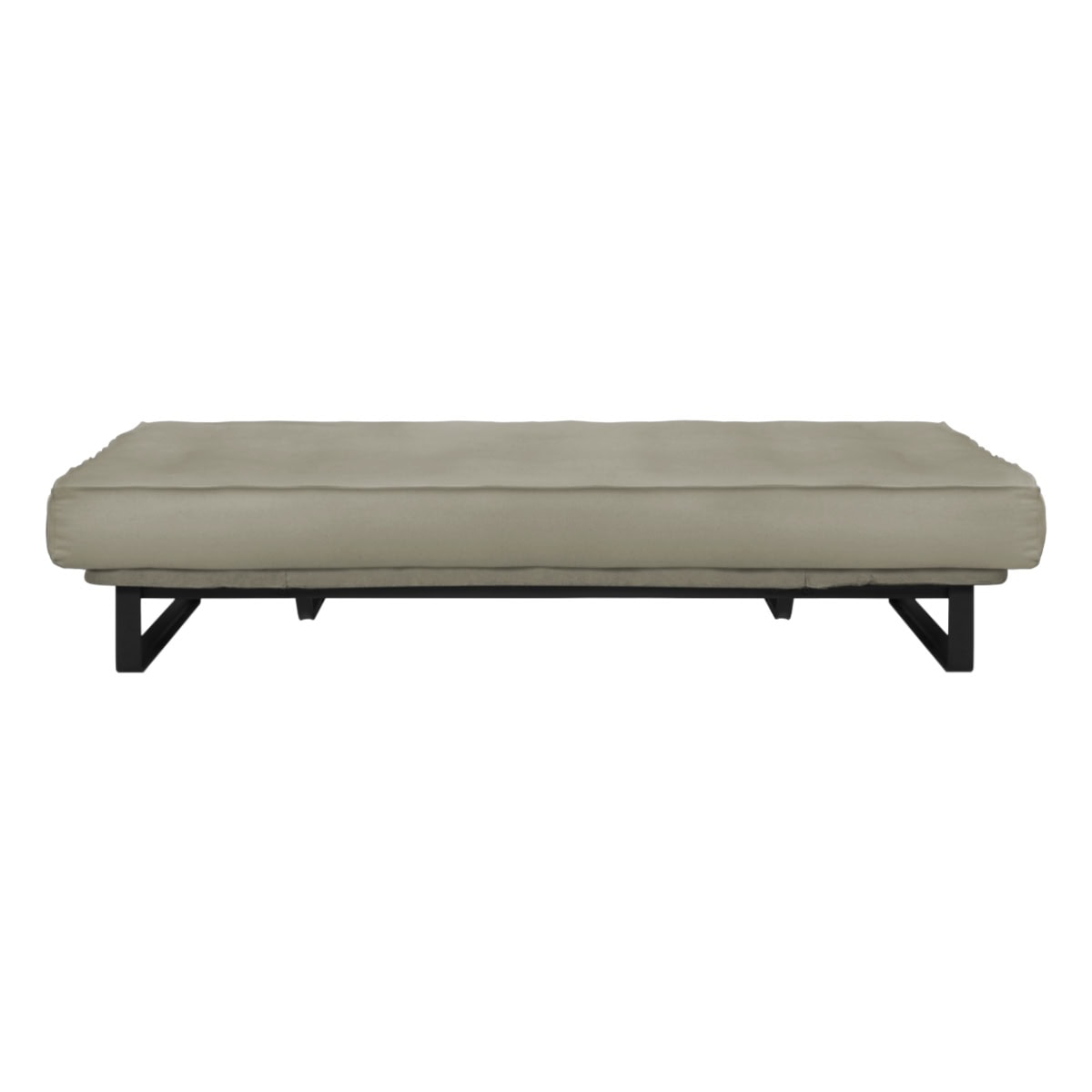 Sofá-cama multifuncional com base metálica preta e futon sharp. 3 posições: sofá, cama e chaise.
