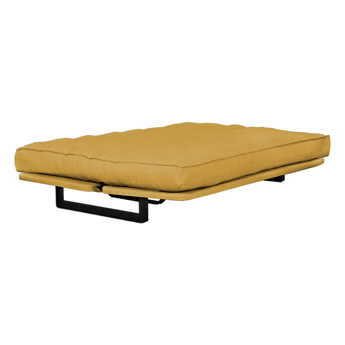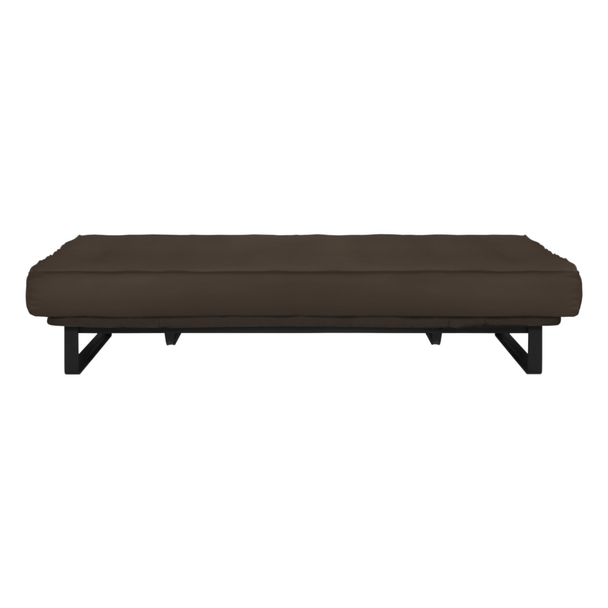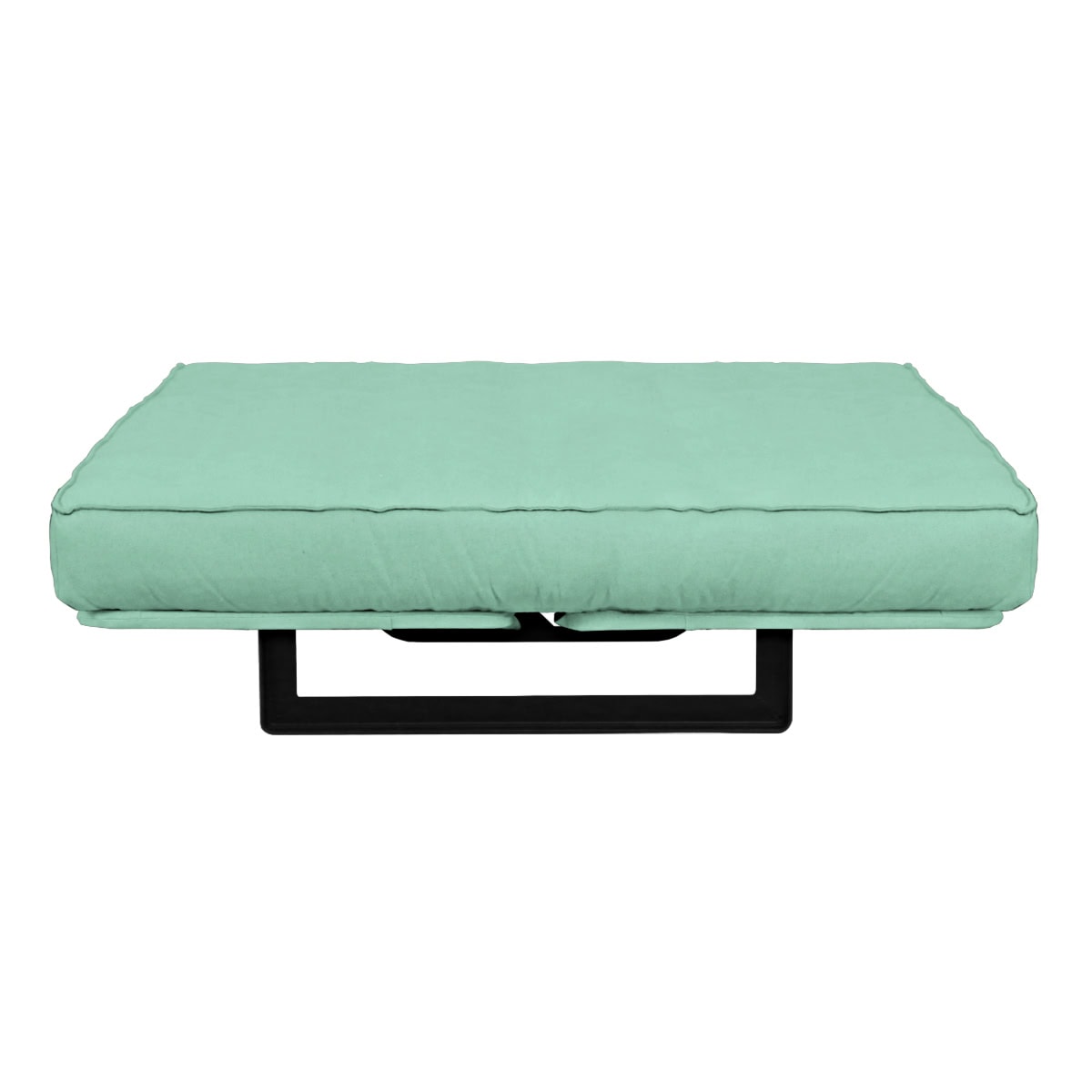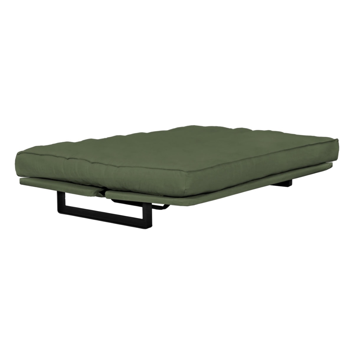 Sofá-cama multifuncional com base metálica preta e futon sharp. 3 posições: sofá, cama e chaise.