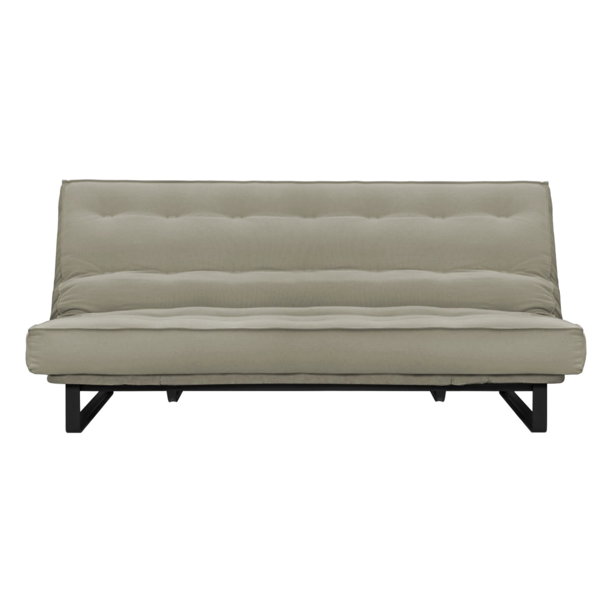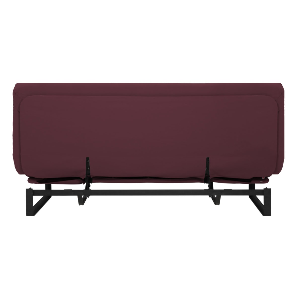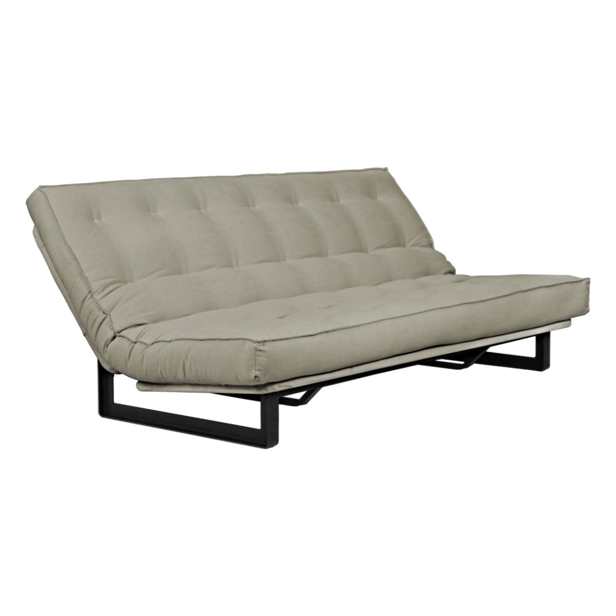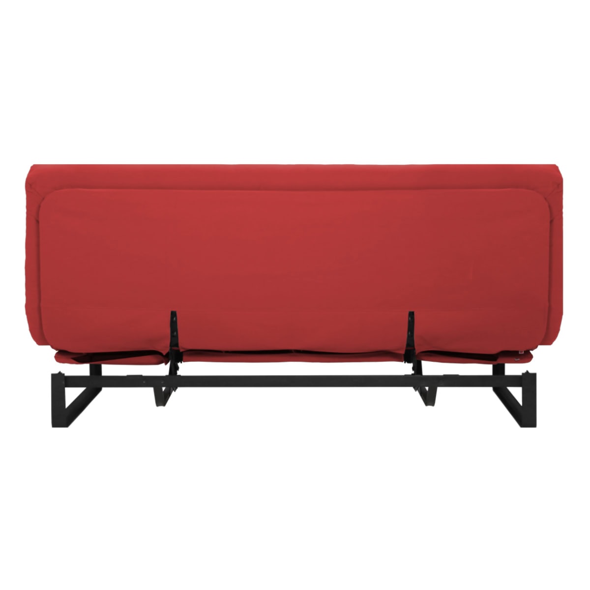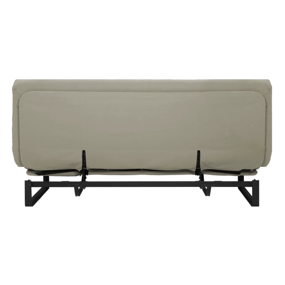 Estrutura ClilcClac: Os Sofás-Camas de base metálica da Futon Company utilizam mecanismo Clic-Clac importado, que simplifica o manuseio do sofá-cama ao gesto de um “clic” e “clac”. O estrado Ripaflex® em madeira multilaminada, articulado, garante conforto e durabilidade em todas as configurações. A estrutura é em aço pintado de alta fusão e permite alternar facilmente entre as posições sofá, cama e “relax” apenas basculando a estrutura.