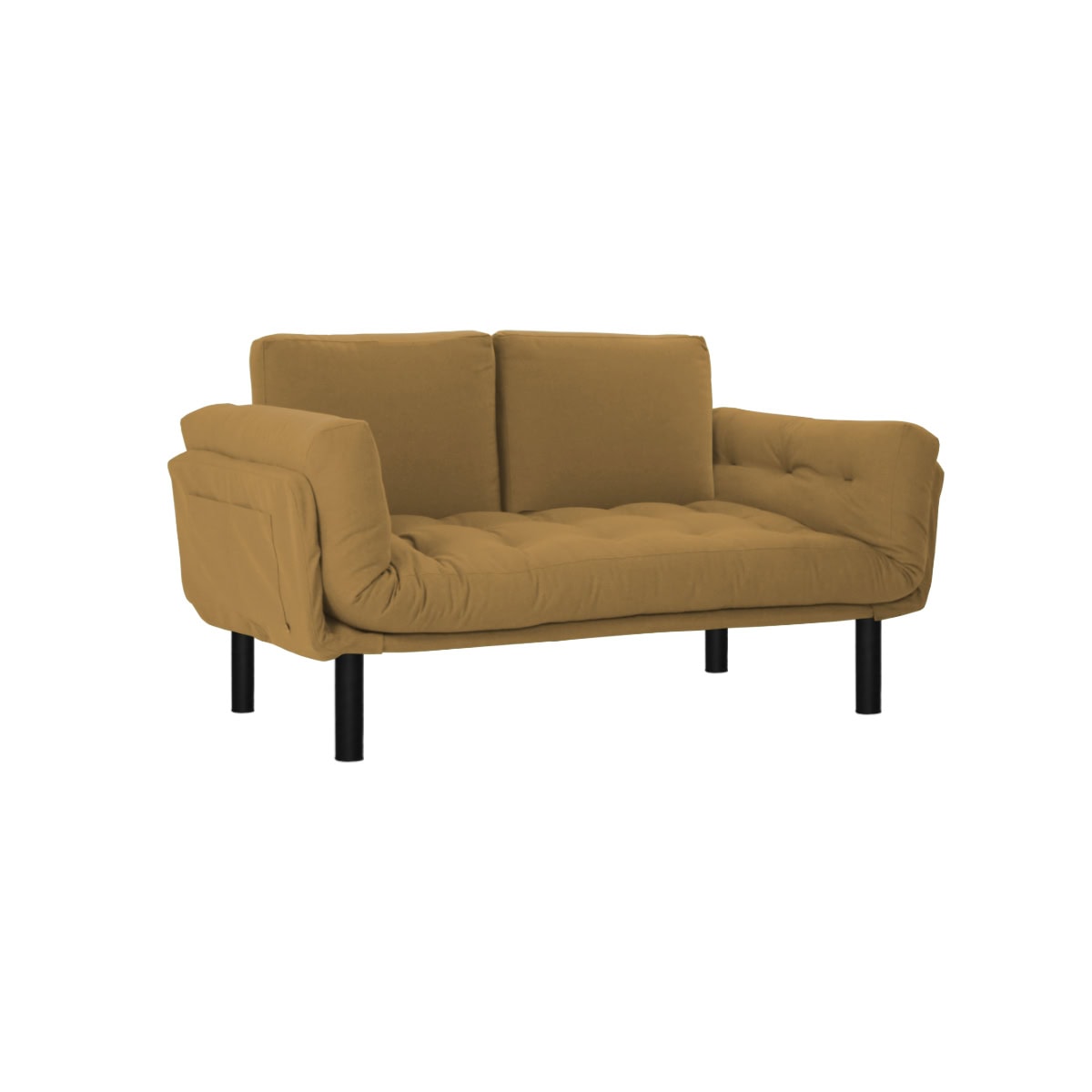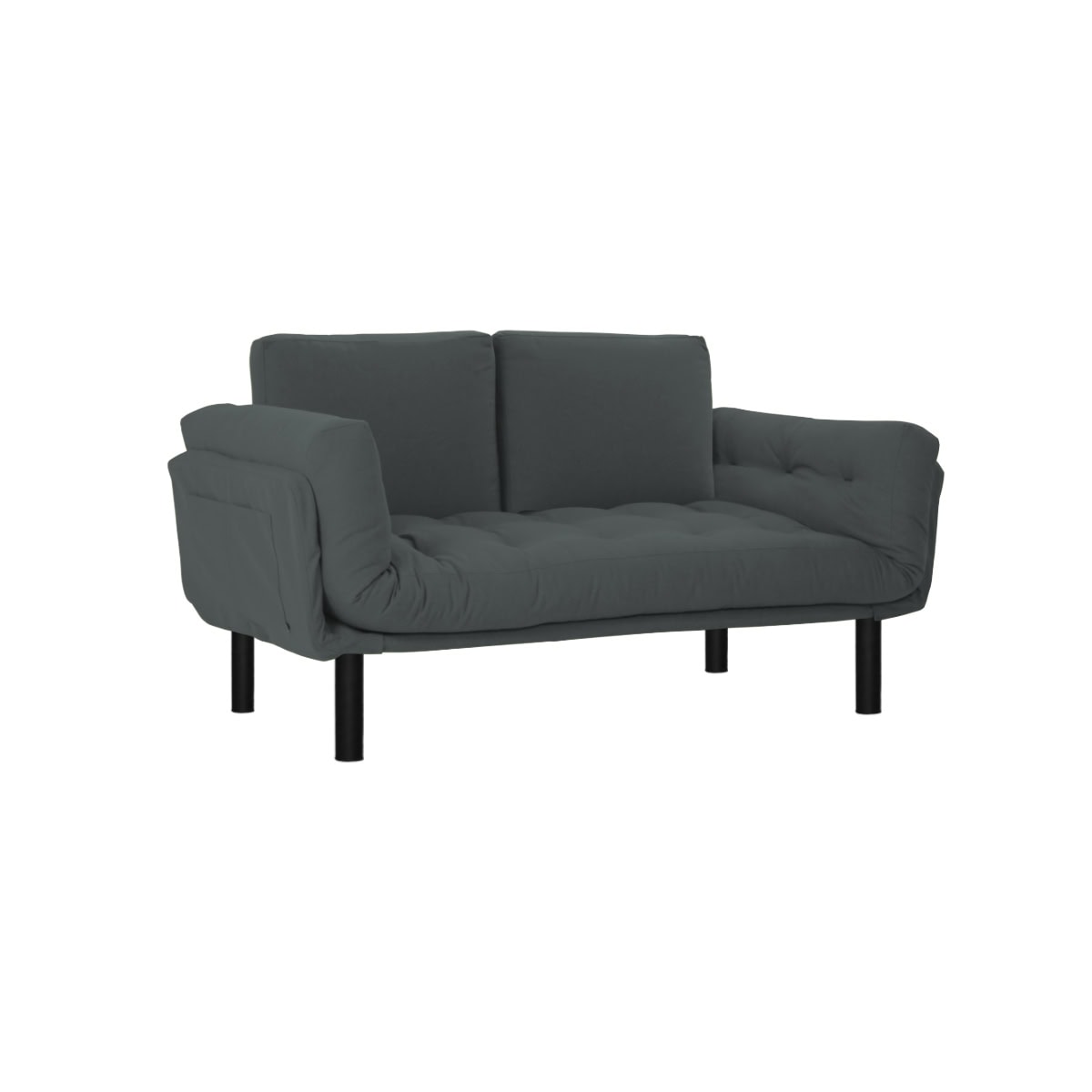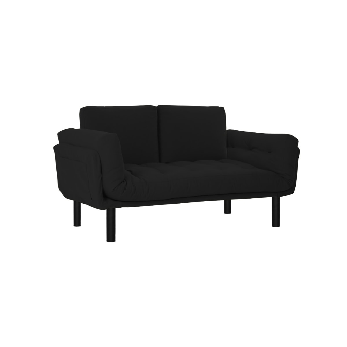 Design 60’s para esse sofá e cama New Oslo com pés Black. Equipado de futon revestido de tecido ecolona, braços articulados, compacto, estiloso e confortável.