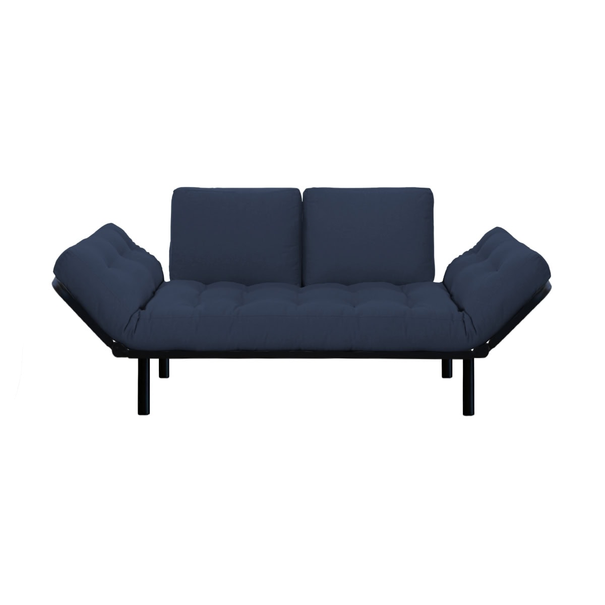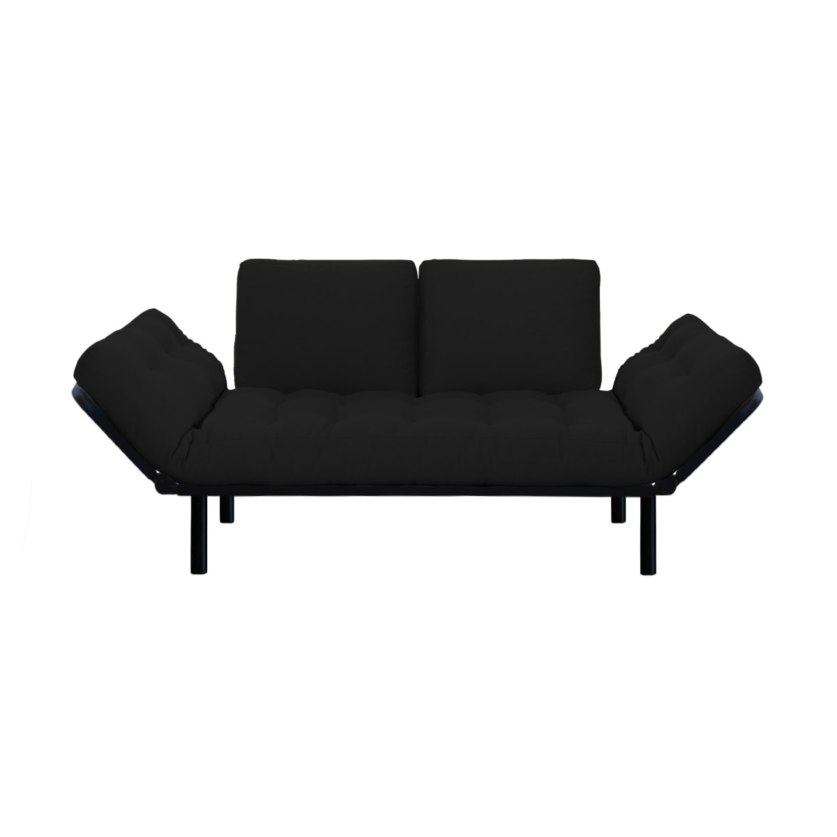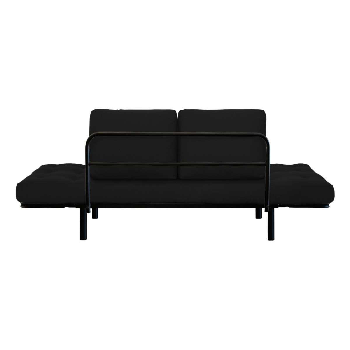New Oslo: sofá-cama retrô 60’s com pés Black, braços articulados e sistema clic-clac. Nessa versão a estrutura é sem a capa de revestimento.