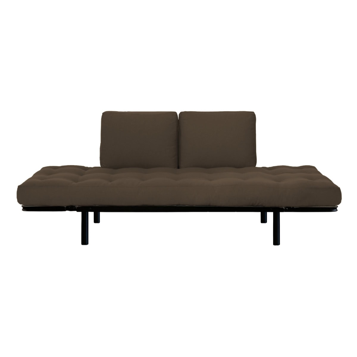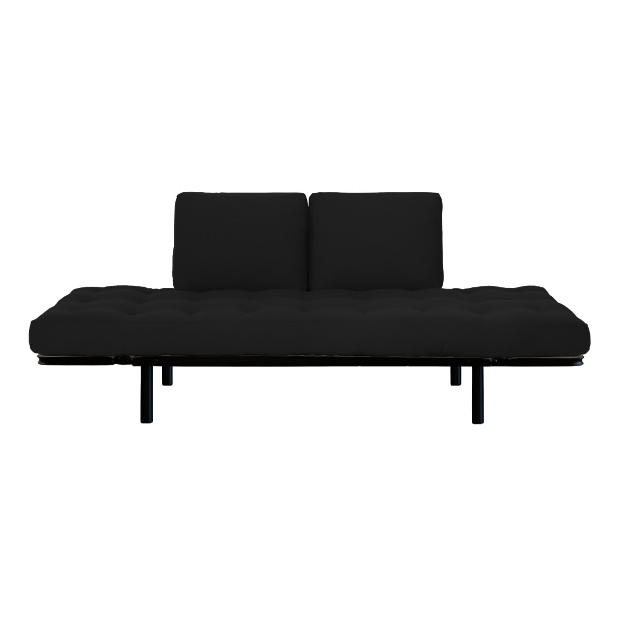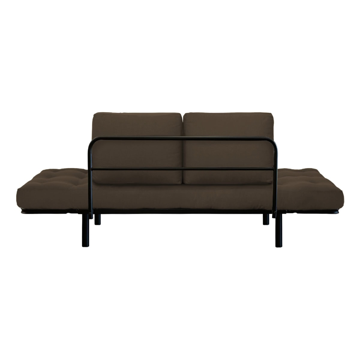New Oslo: sofá-cama retrô 60’s com pés Black, braços articulados e sistema clic-clac. Nessa versão a estrutura é sem a capa de revestimento.