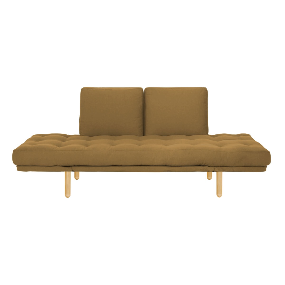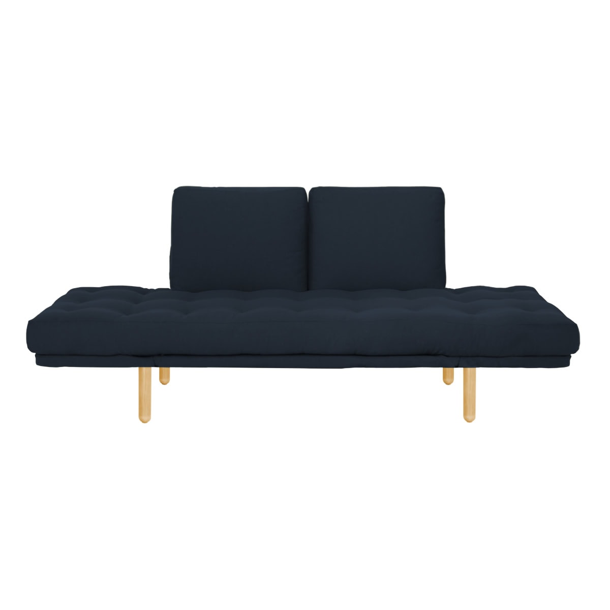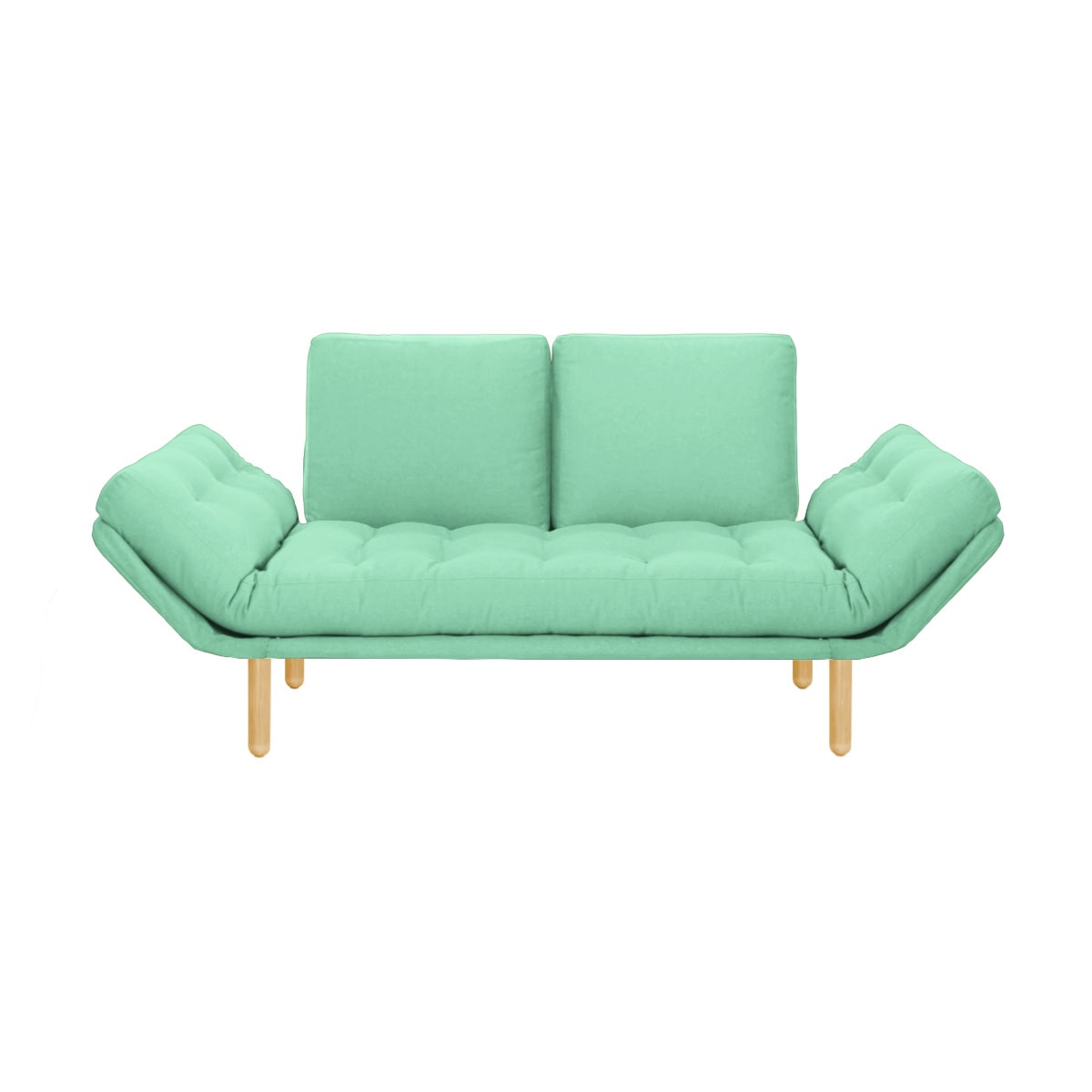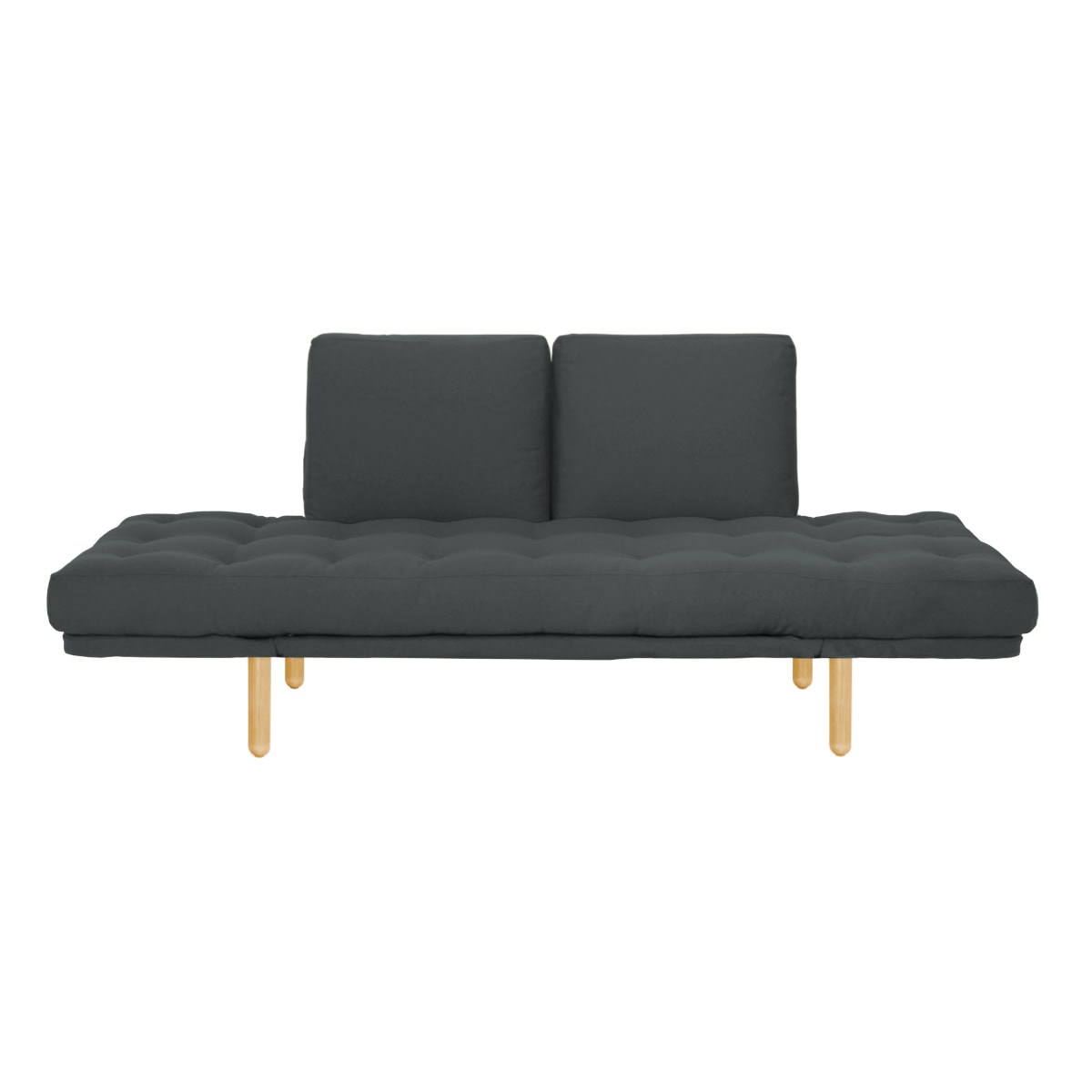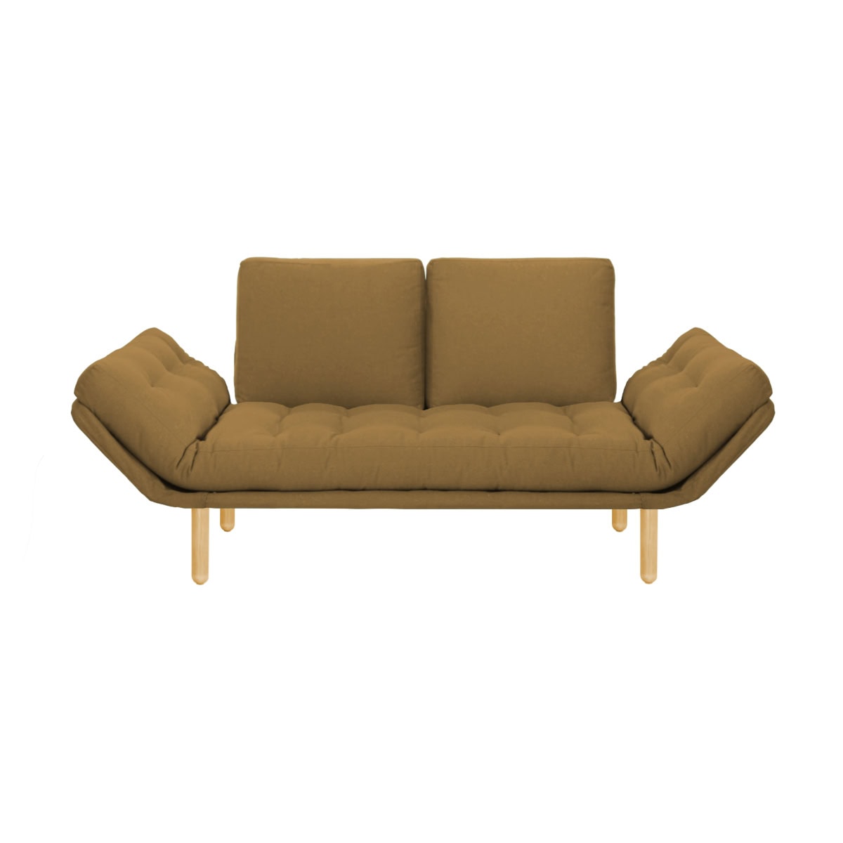 Design 60’s para esse sofá e cama New Oslo com pés Round. Equipado de futon revestido de tecido Ecolona, braços articulados, compacto, estiloso e confortável.