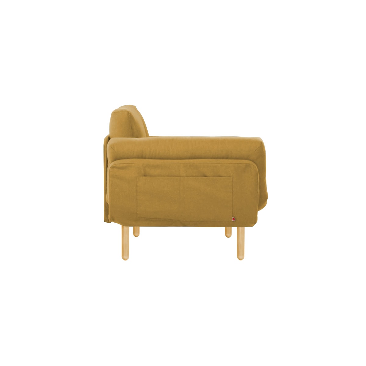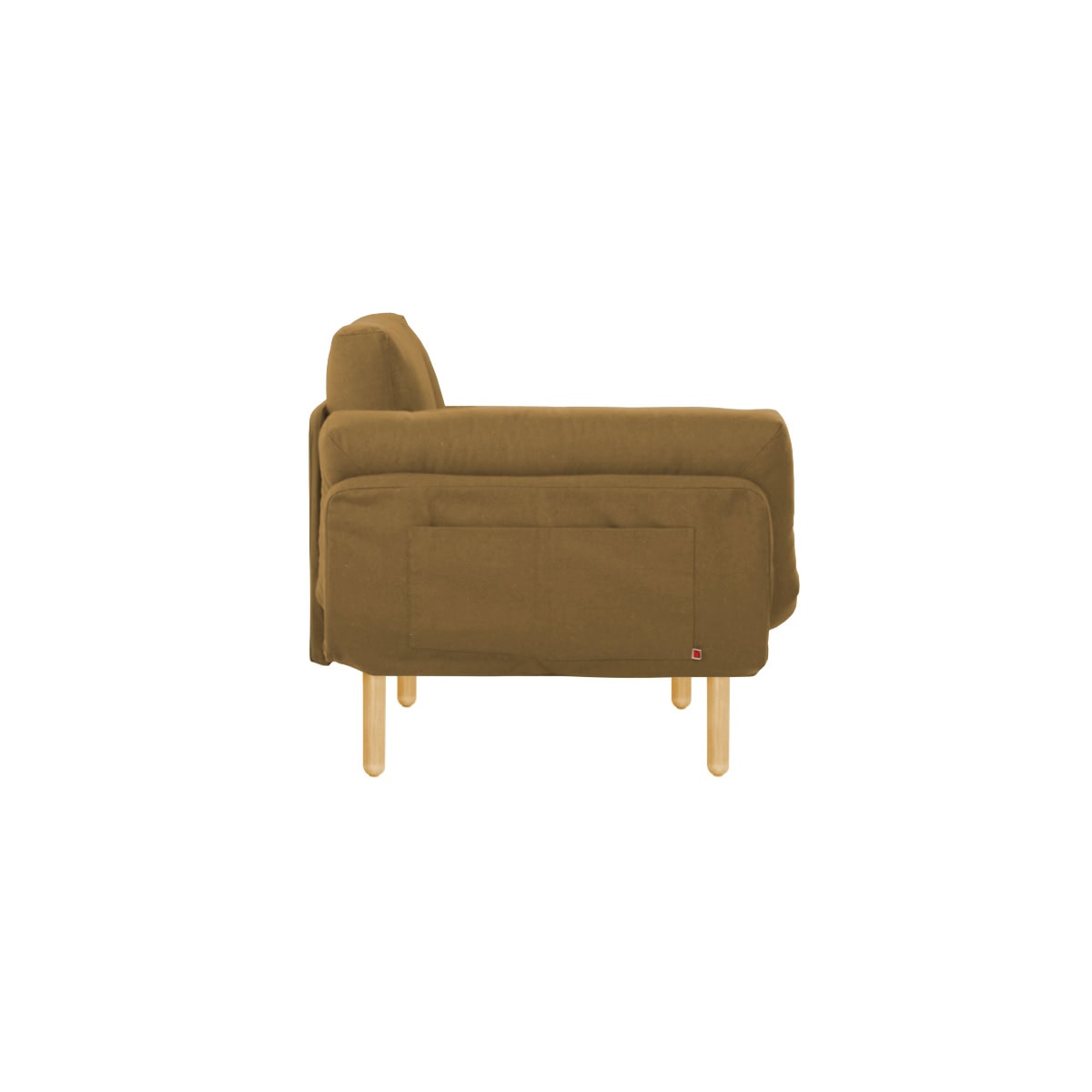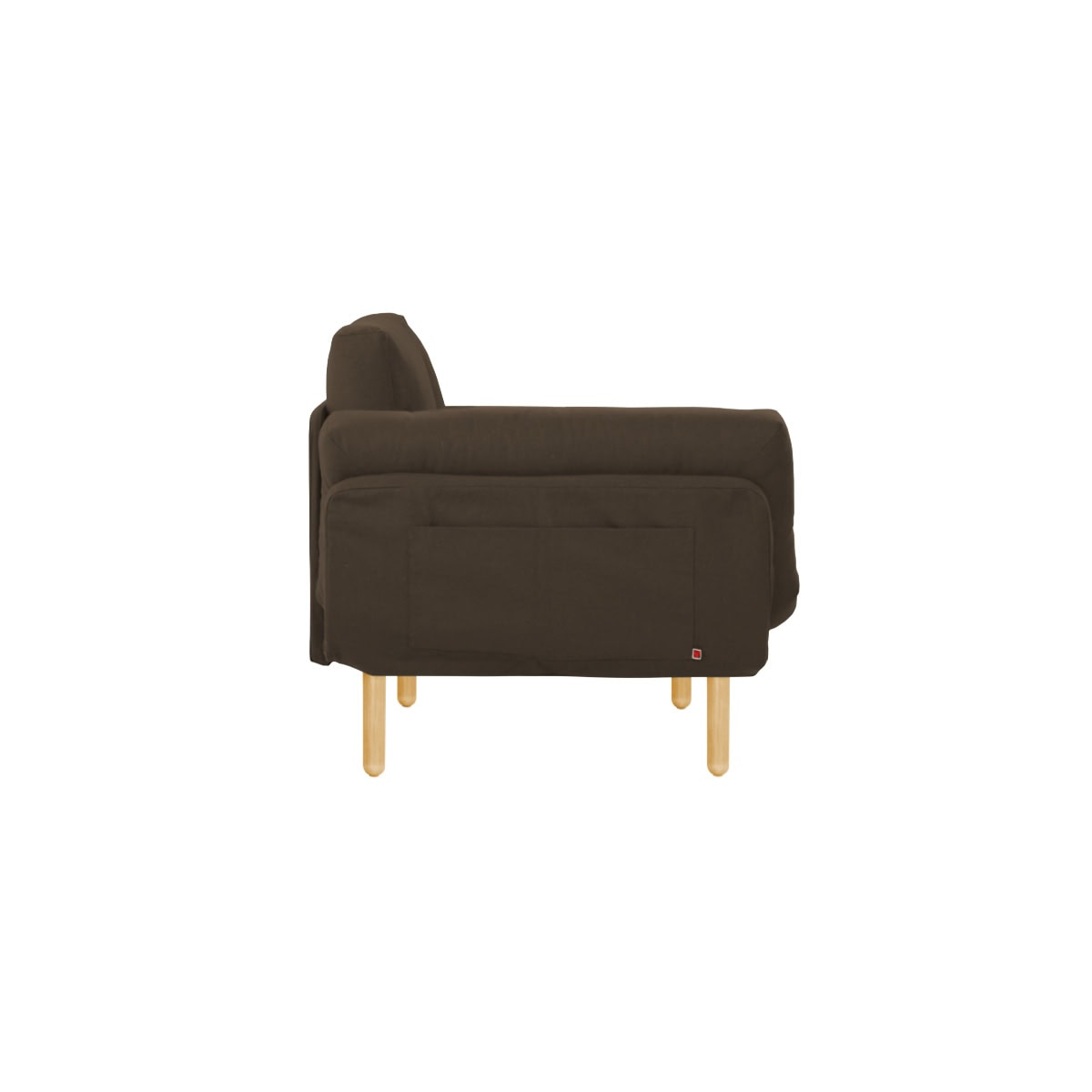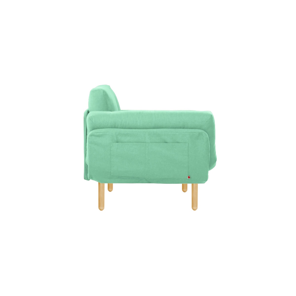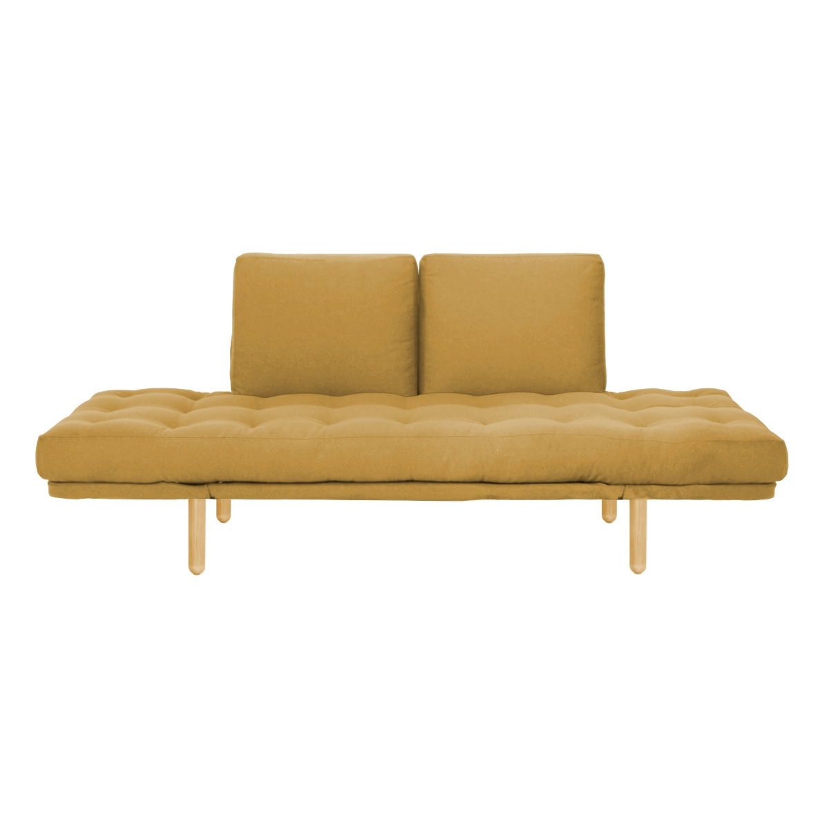 Design 60’s para esse sofá e cama New Oslo com pés Round. Equipado de futon revestido de tecido Ecolona, braços articulados, compacto, estiloso e confortável.