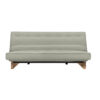 Sofá-cama Chicago com sistema ClicClac, base metálica, pés de madeira e futon capitonê. 3 posições: sofá, lounge e cama. Design moderno e funcional.