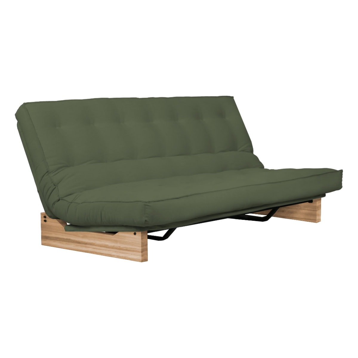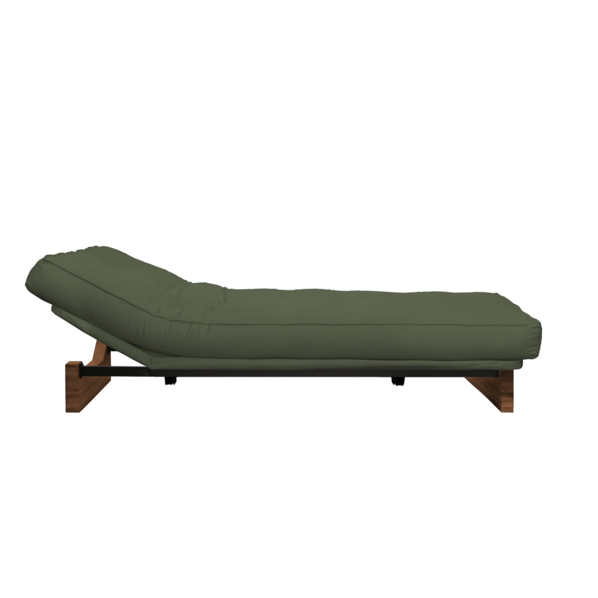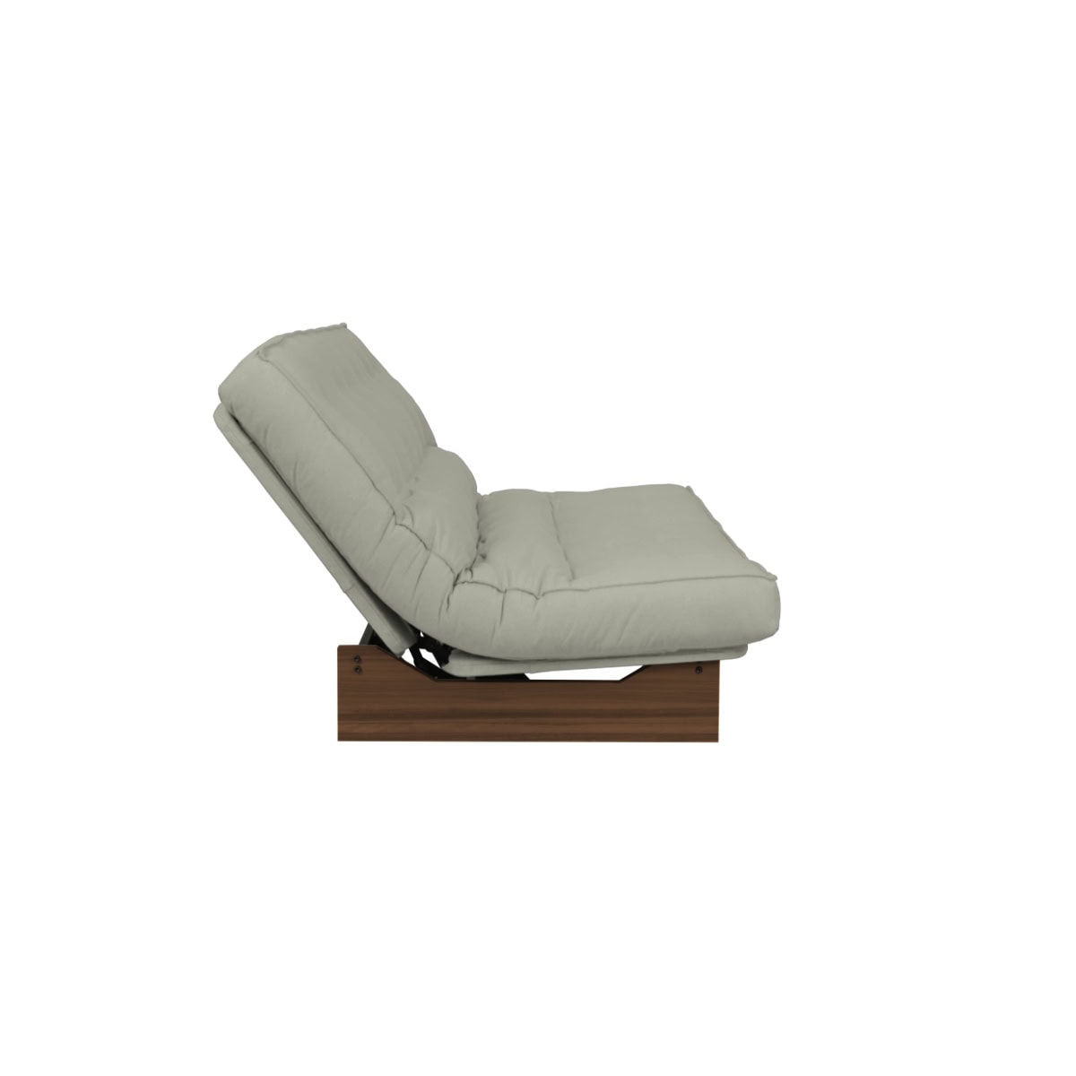 Estrutura ClilcClac: Os Sofás-Camas de base metálica da Futon Company utilizam mecanismo Clic-Clac importado, que simplifica o manuseio do sofá-cama ao gesto de um “clic” e “clac”. O estrado Ripaflex® em madeira multilaminada, articulado, garante conforto e durabilidade em todas as configurações. A estrutura é em aço pintado de alta fusão e permite alternar facilmente entre as posições sofá, cama e “relax” apenas basculando a estrutura.