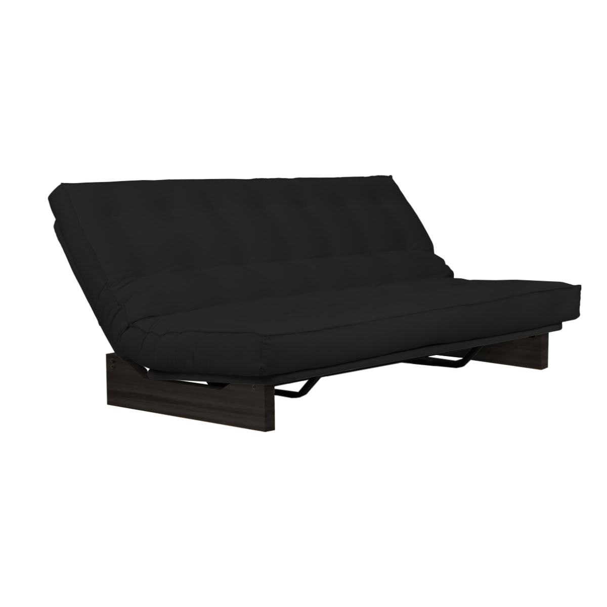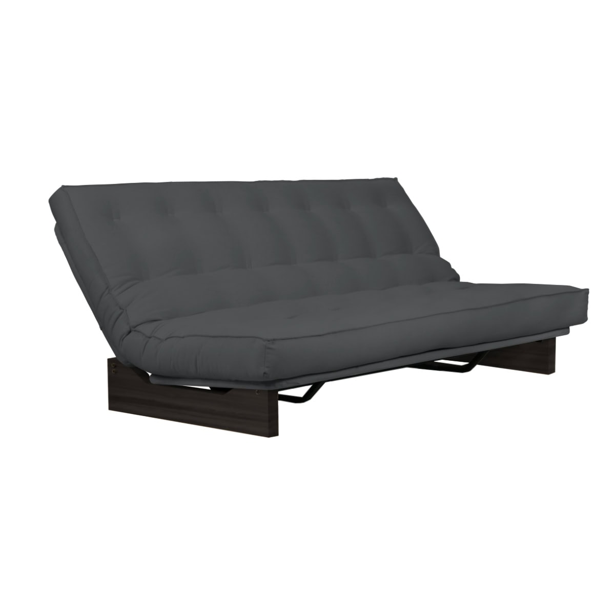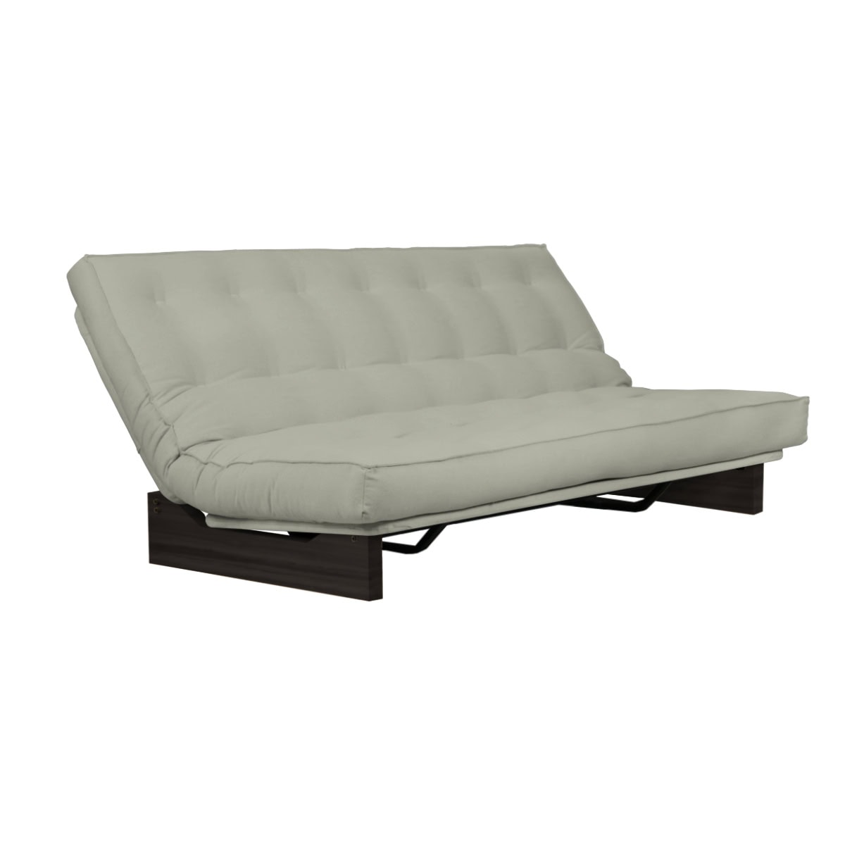 Estrutura ClilcClac: Os Sofás-Camas de base metálica da Futon Company utilizam mecanismo Clic-Clac importado, que simplifica o manuseio do sofá-cama ao gesto de um “clic” e “clac”. O estrado Ripaflex® em madeira multilaminada, articulado, garante conforto e durabilidade em todas as configurações. A estrutura é em aço pintado de alta fusão e permite alternar facilmente entre as posições sofá, cama e “relax” apenas basculando a estrutura.