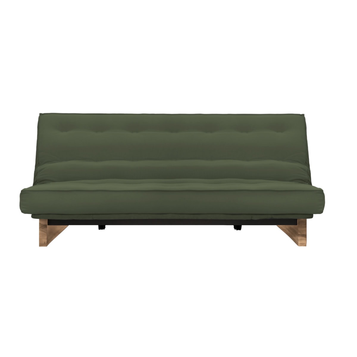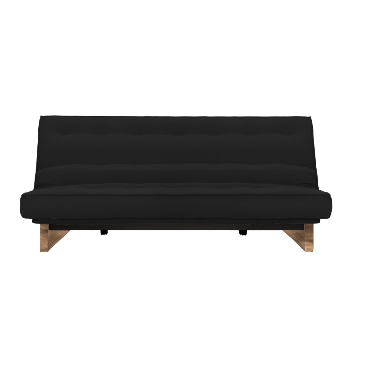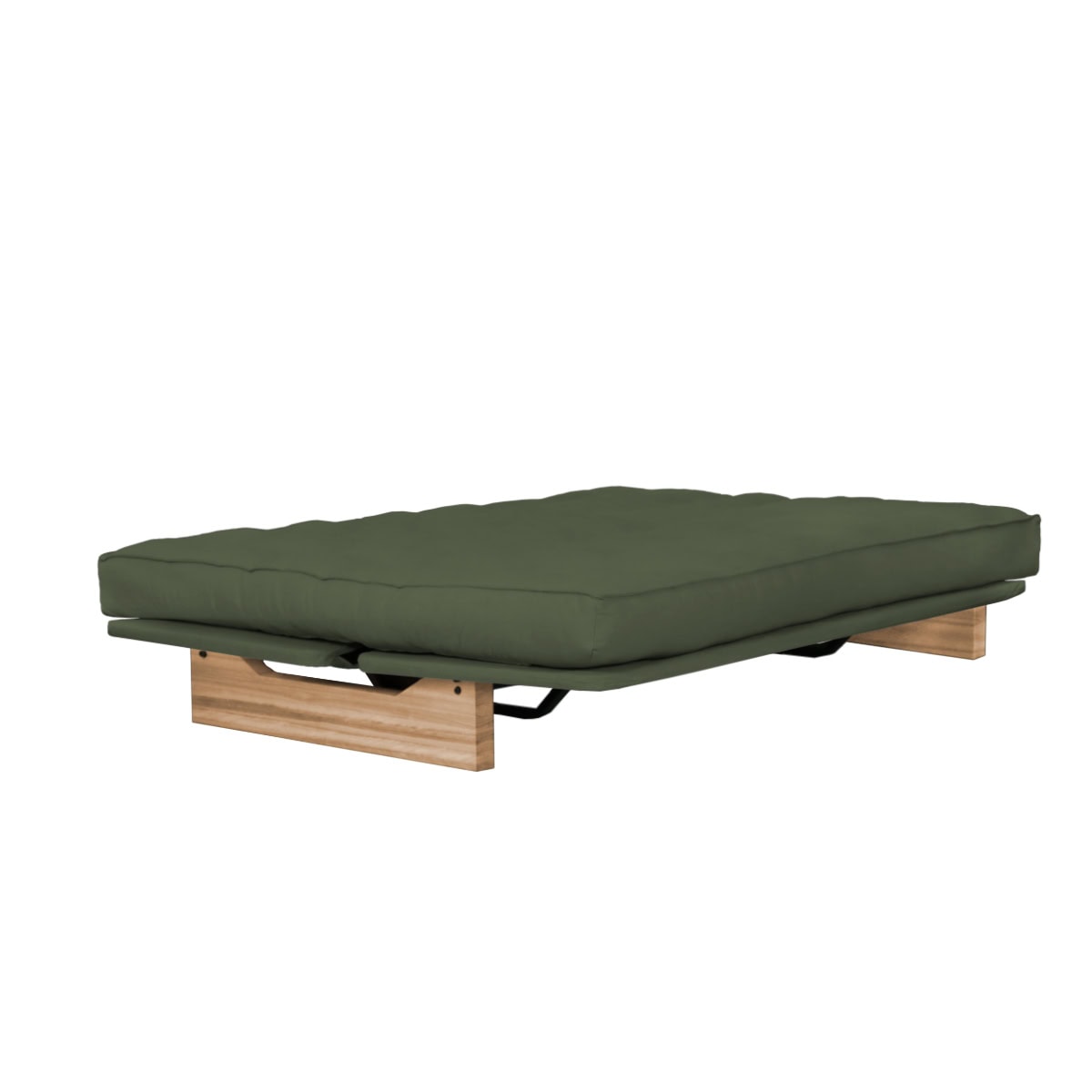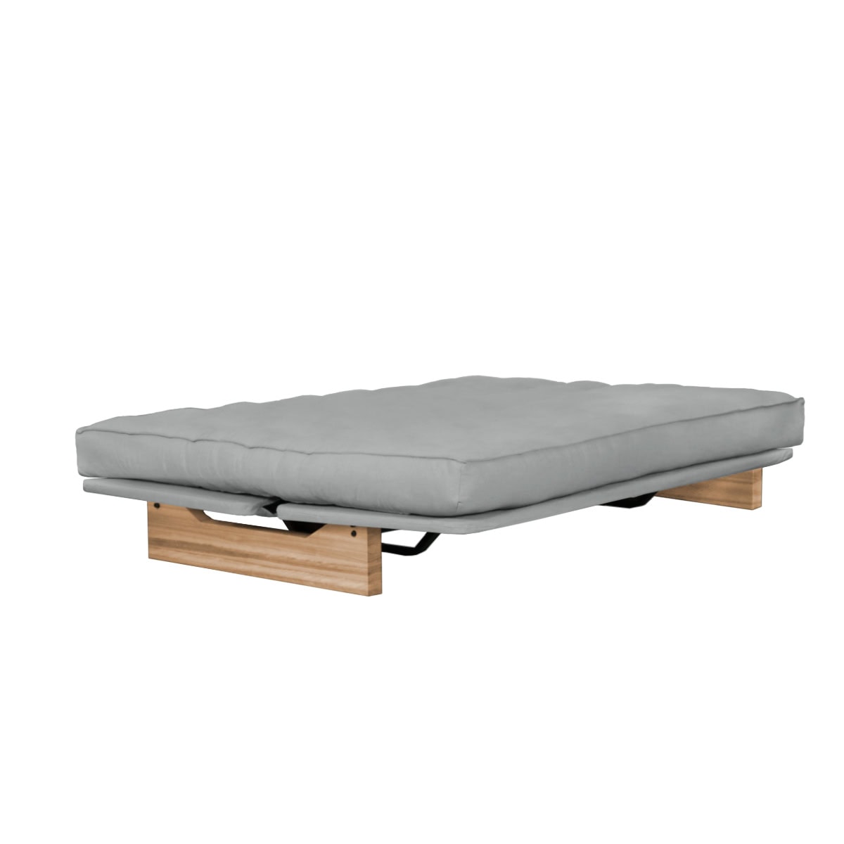 Os Sofás-Camas de base metálica da Futon Company utilizam mecanismo Clic-Clac importado, que simplifica o manuseio do sofá-cama ao gesto de um “clic” e “clac”. O estrado Ripaflex® em madeira multilaminada, articulado, garante conforto e durabilidade em todas as configurações. A estrutura é em aço pintado de alta fusão e permite alternar facilmente entre as posições sofá, cama e “relax” apenas basculando a estrutura.